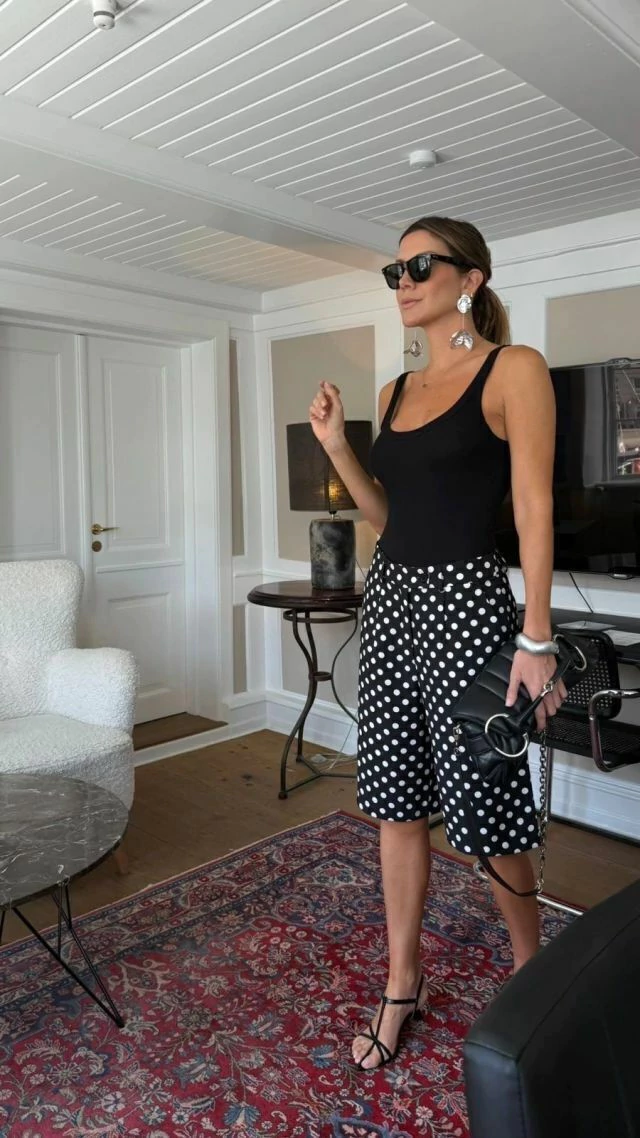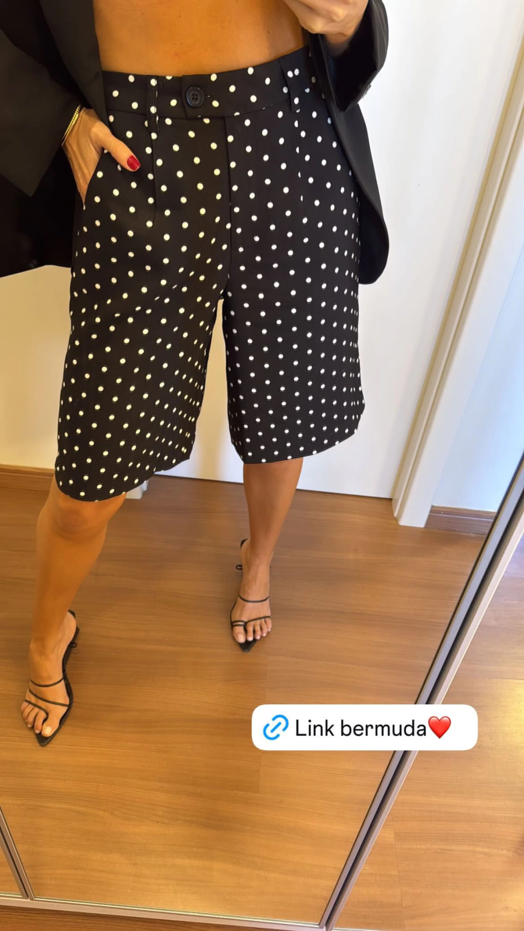 Bermuda em alfaitaria, estampa poá. Possui corte reto, fechamento por botão e zíper, passante para cinto e bolsos funcionais.