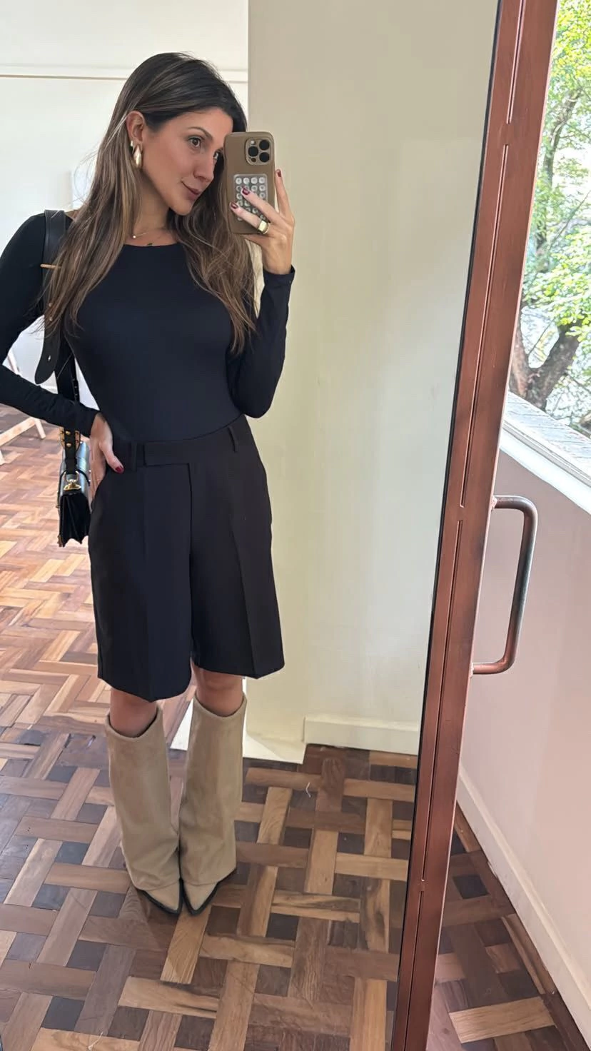 Bermuda em alfaiataria, fechamento por zíper e botão, passante para cinto e bolsos.