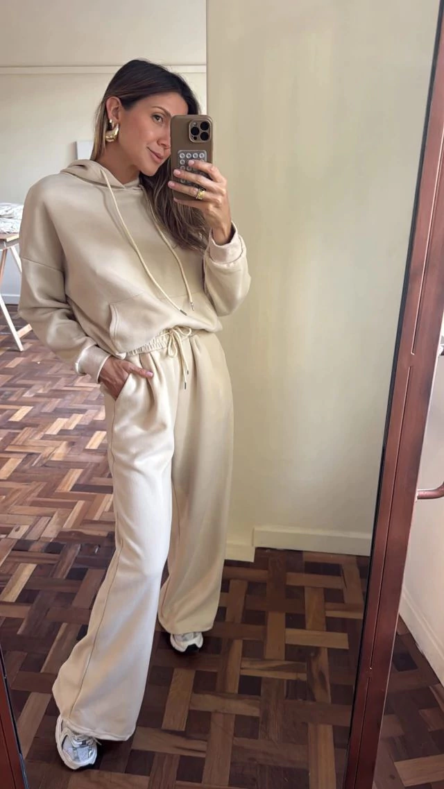 Blusa em moletom careca (sem felpa) com toque aveludado, super confortável. Possui bolso canguru e capuz com cordão e ponteira. Modelagem mais ampla.