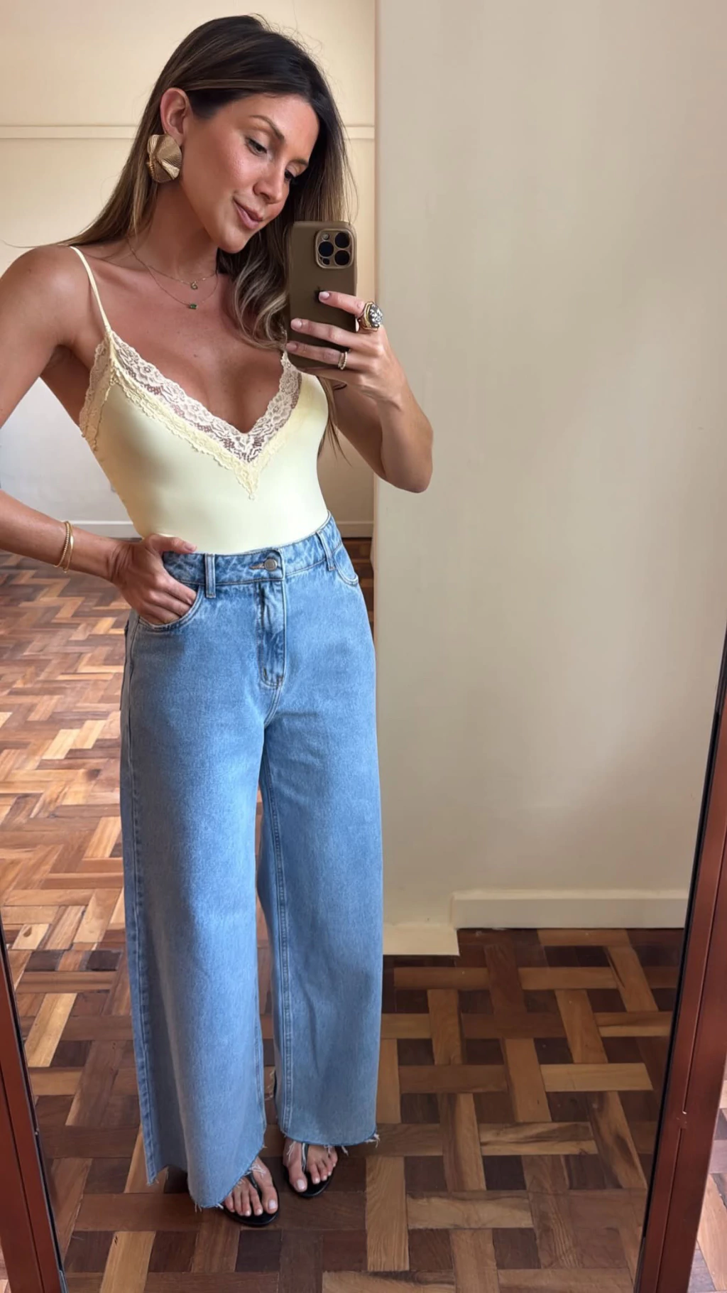 Body em poliamida com alcinhas reguláveis e renda aplicada no busto. Feixo colchete na parte inferior.