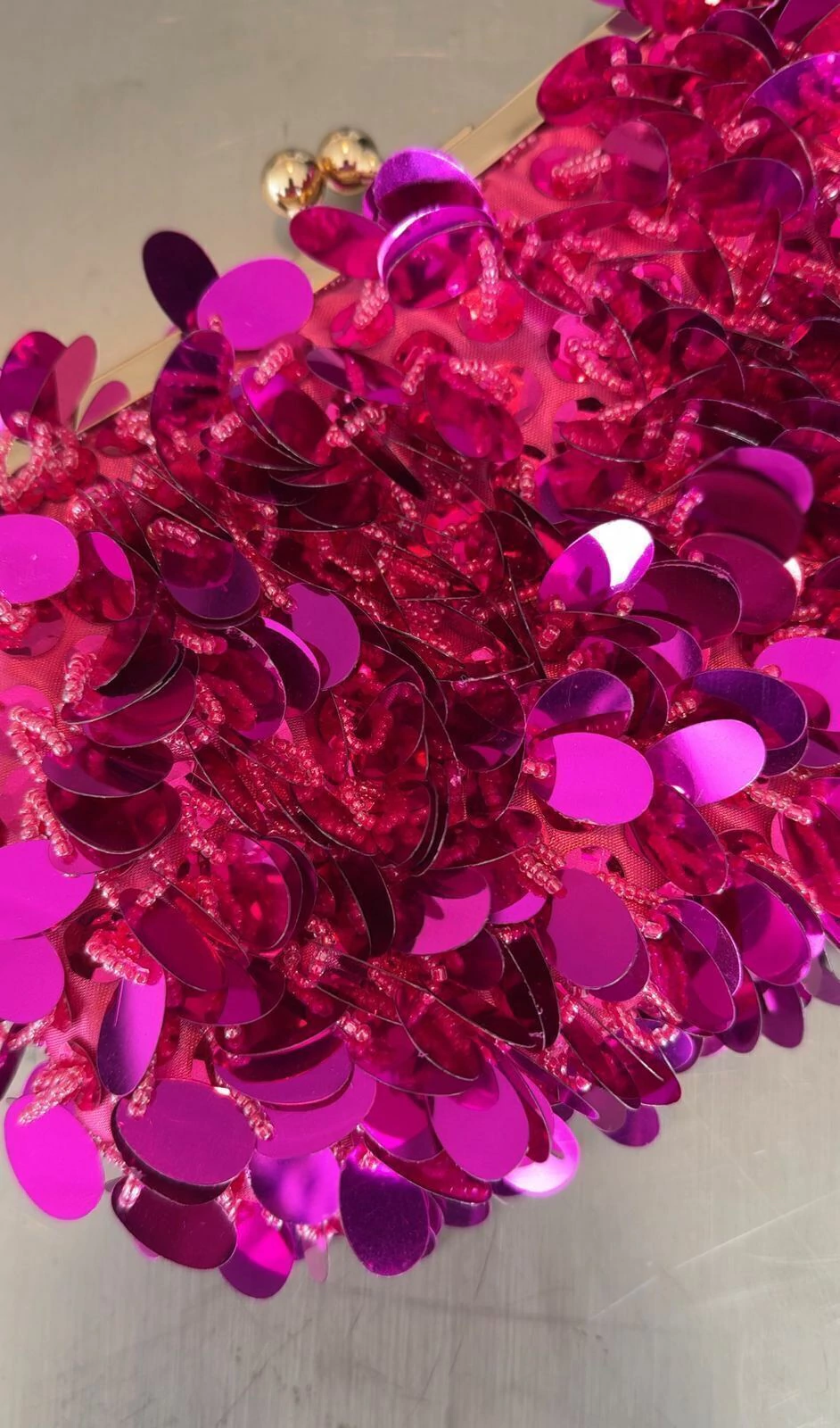 Bolsa com alçinha em corrente dourada, em macro paetê.