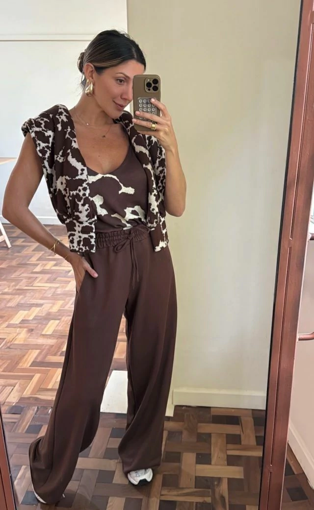 Calça em moletom careca (sem felpa), com toque aveludado e de extremo conforto. Modelagem mais ampla que a tradicional, possui elástiico na cintura e amarração por cordão.