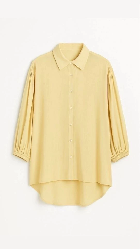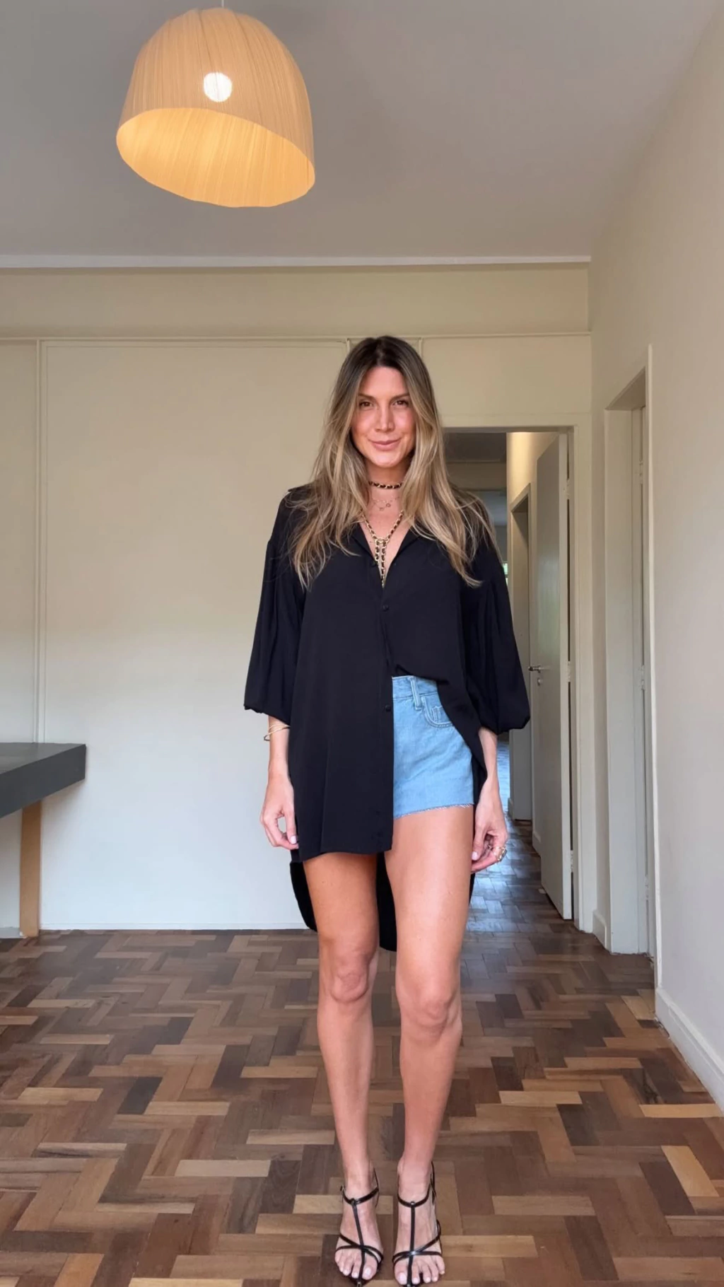 Camisa ampla em viscose, super confortável e fluída, com elástico no punho e mangas bem amplas, comprimento mais alongado na parte de trás, indicamos para manequi 34 (vestindo mais oversized) até manequim 46.