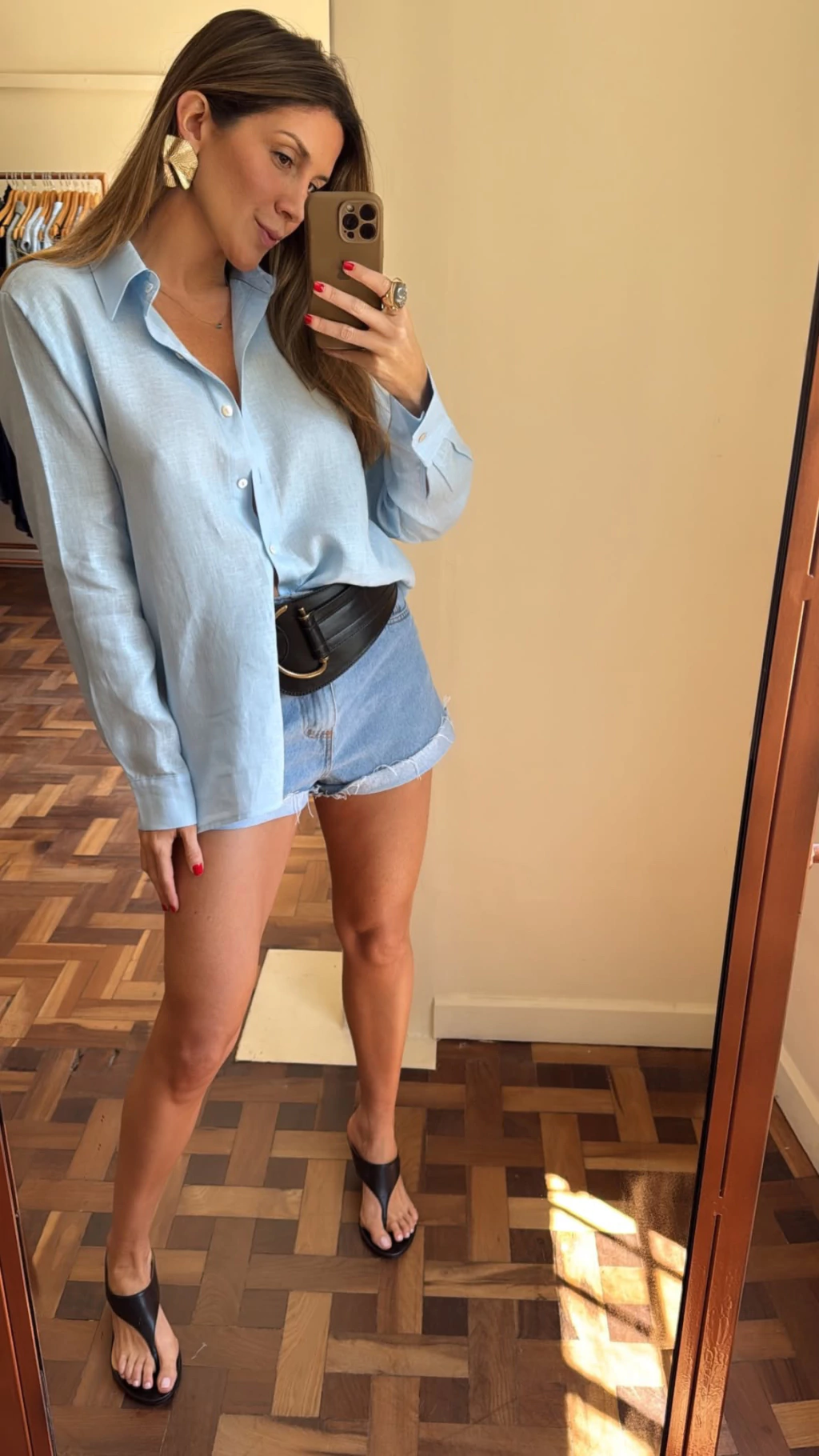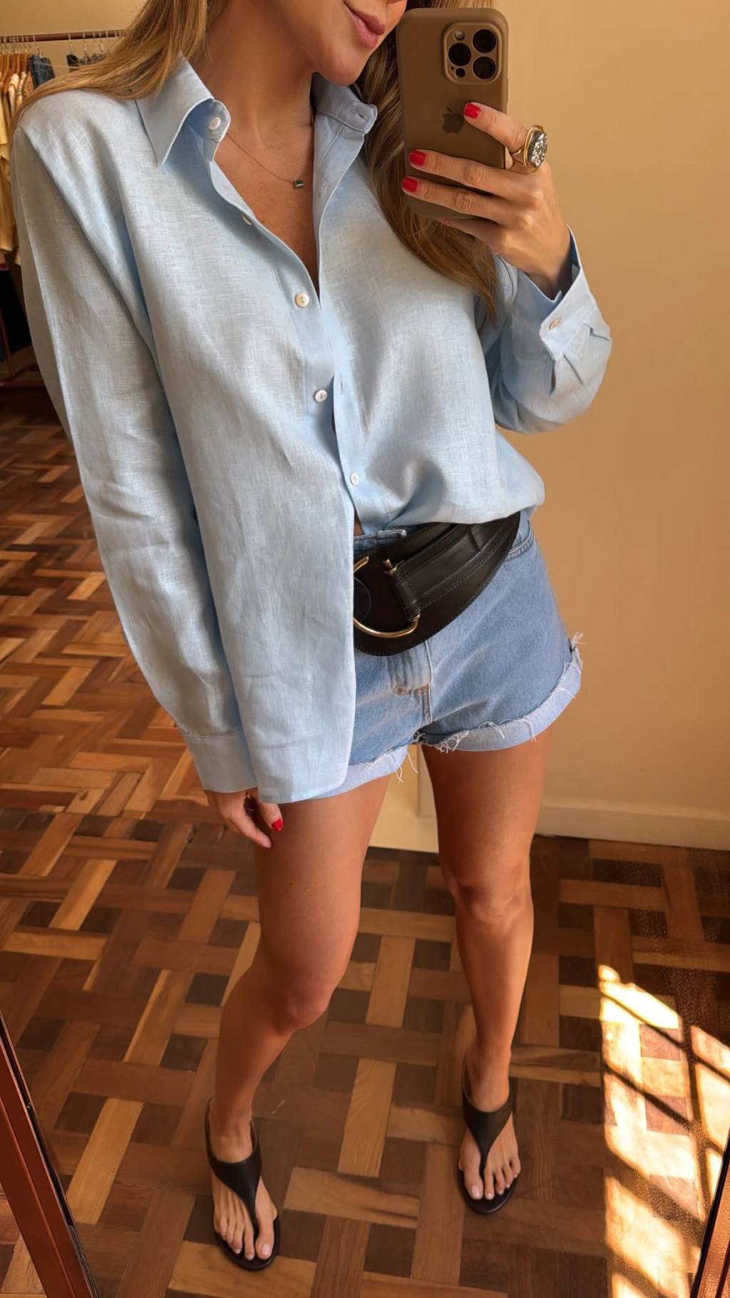 Camisa confeccionada em linho puro, corte tradicional. Fechamento por botões .