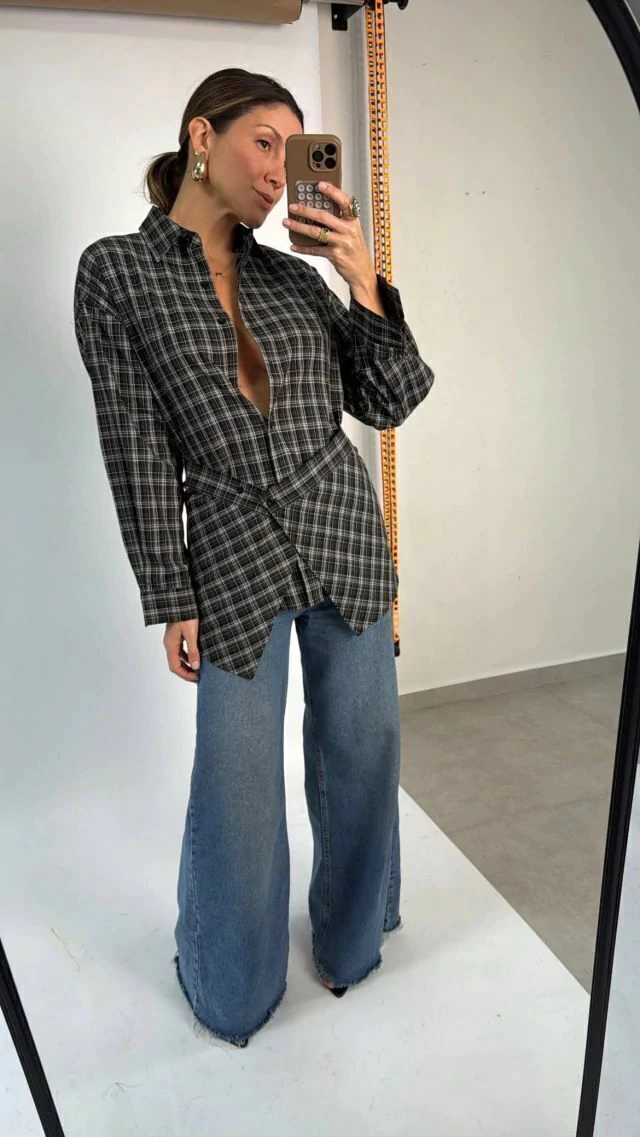 Camisa em algodão com toque super gostoso, acompanha faixa que pode ser usada para acinturar a camisa, fixada por botões na lateral.