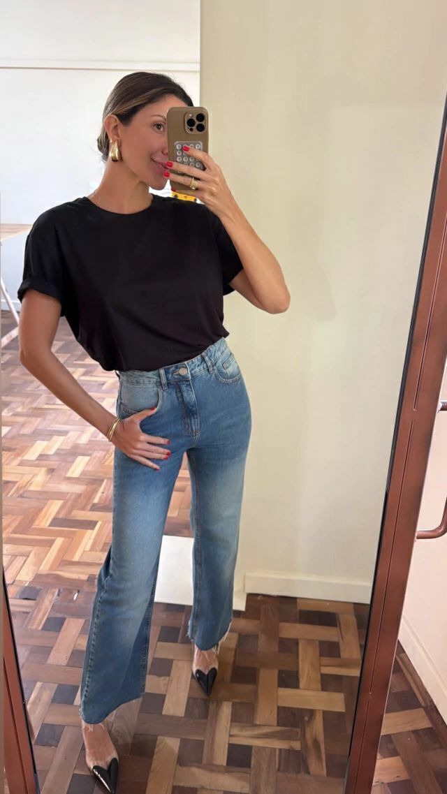 Camiseta tradicional . Se quier optar por uma modelagem mais oversized como Amanda usa recomendamos comprar numeração maior.