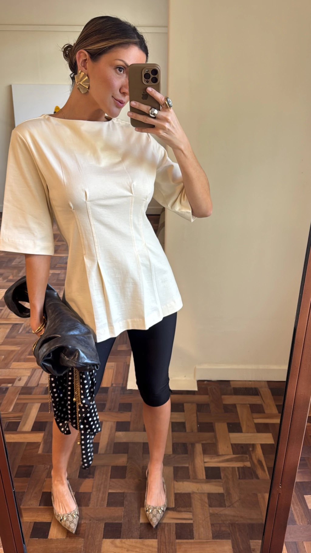 Camiseta em malha super confortável, possui pregas frontais que dão um toque de requinte e diferenciado a peça.