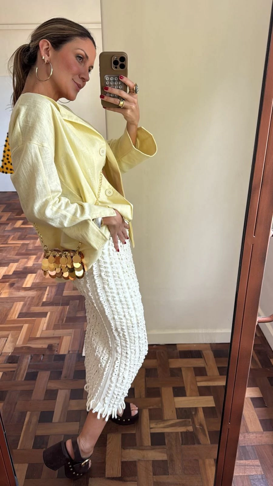 Casaco fresquinho com botão invisível. Feito de rami e algodão. 100% fibra natural.