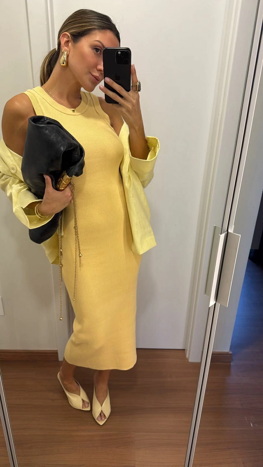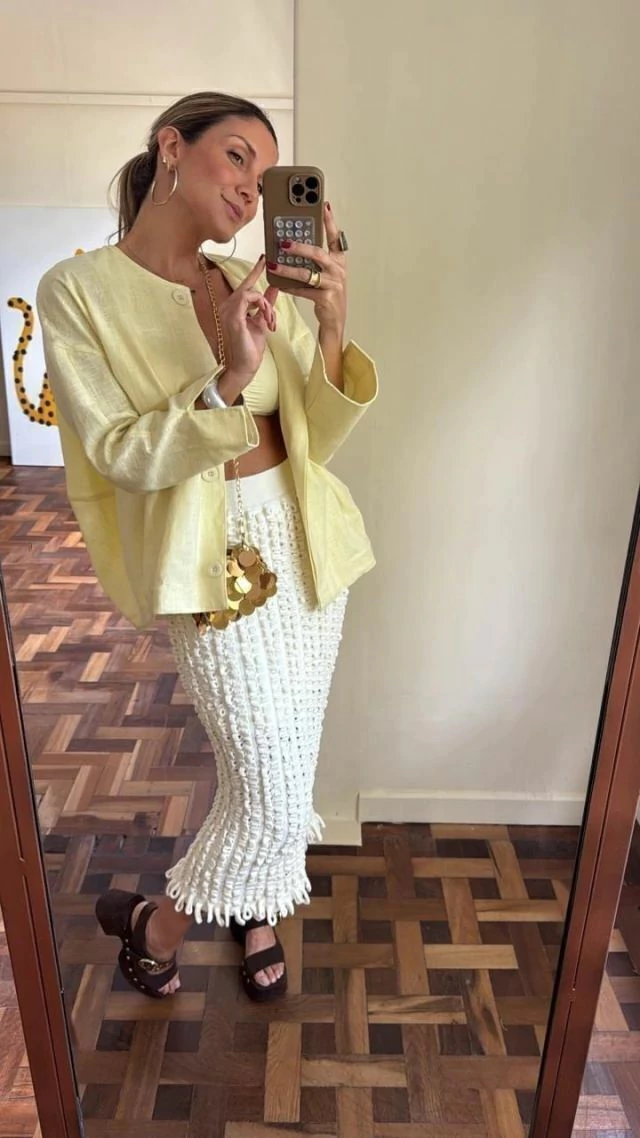 Amanda tem 1,77cm veste manequim 36 e sutiã 44. Quadril 97cm / Cintura 68cm / Busto 90cm e veste nosso tamanho M.