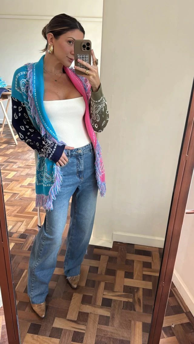 Amanda tem 1,77cm veste manequim 36 e sutiã 44. Quadril 97cm / Cintura 68cm / Busto 90cm.