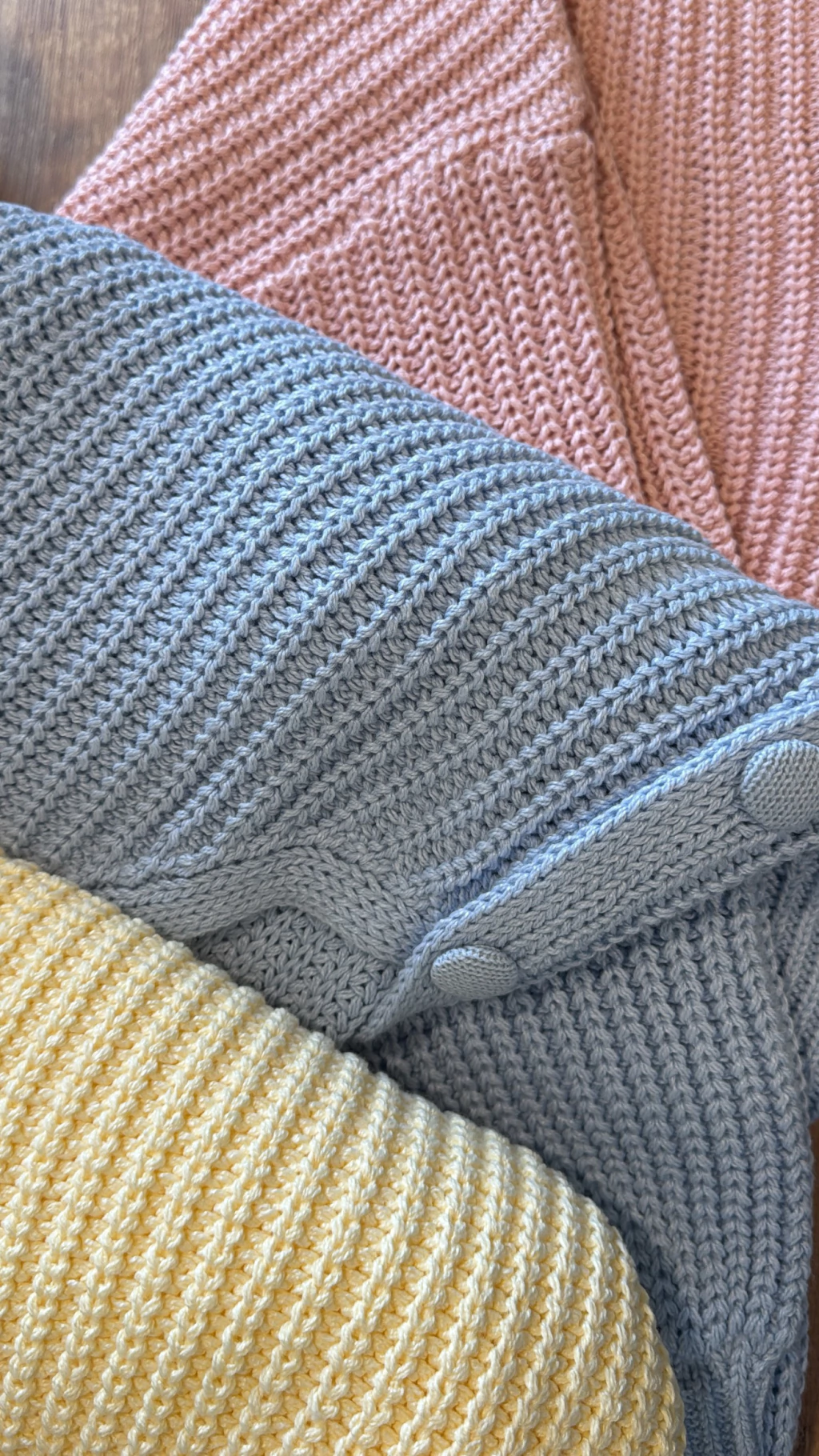 Casaco em tricot macio, fechamento por botões encapados. Tamanho único, veste bem do PP ao G.