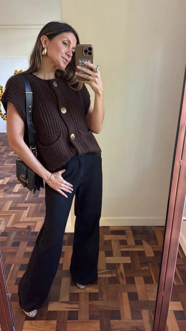 Casaco estilo colete, com botões dourados, Tricot super macio e encorpado. Trama mais aberta. Perfeito para compor looks diversos. Tamanho único.