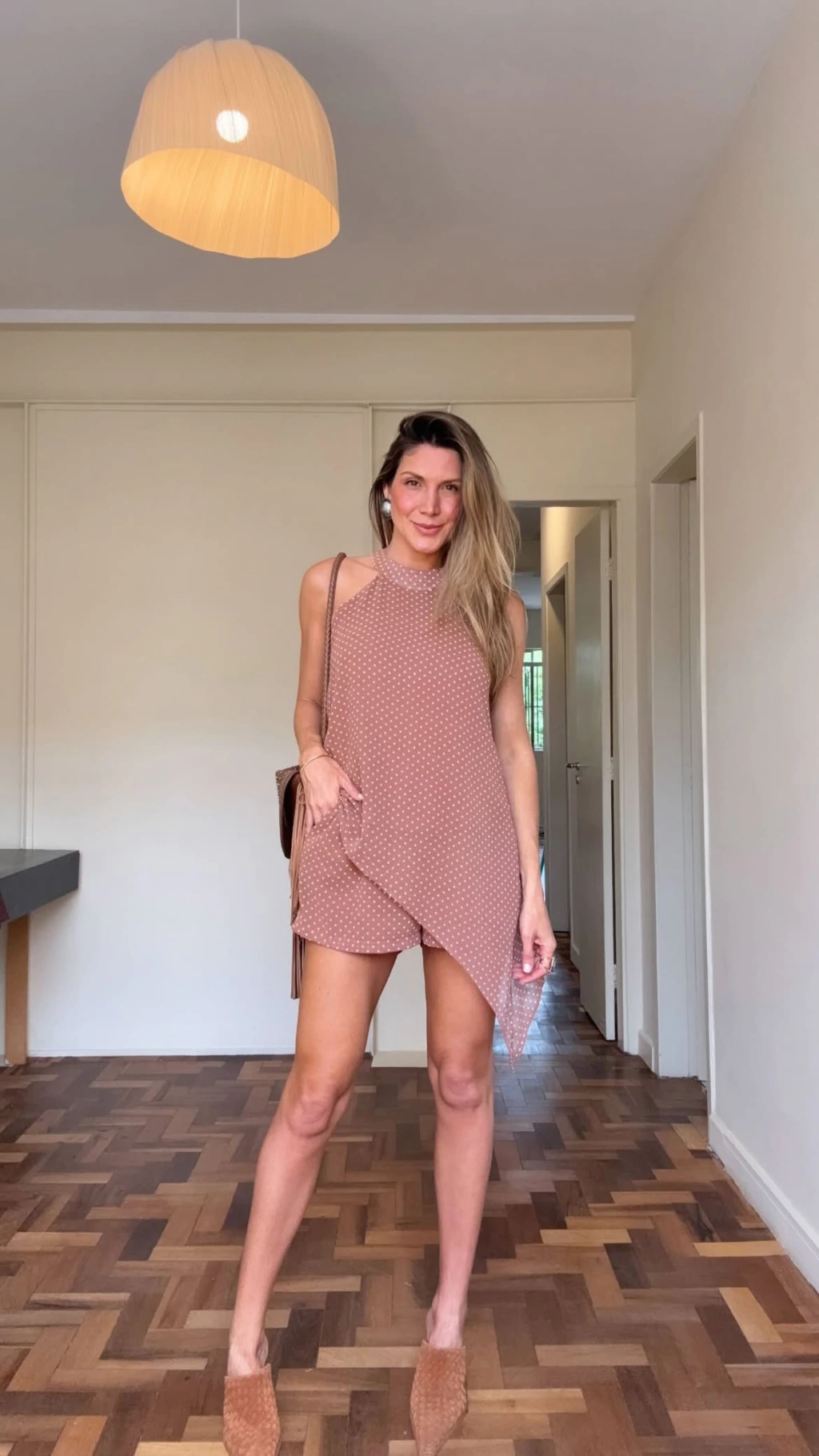 Conjunto de short e blusa frente única. Short com elástico na cintura e blusa modelagem assimétrica e frente única com amarração no pescoço.