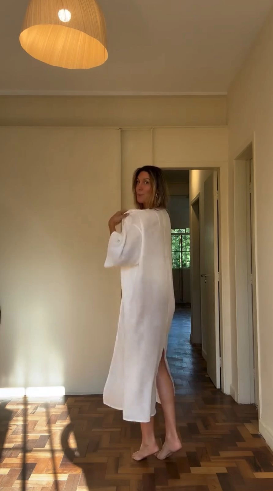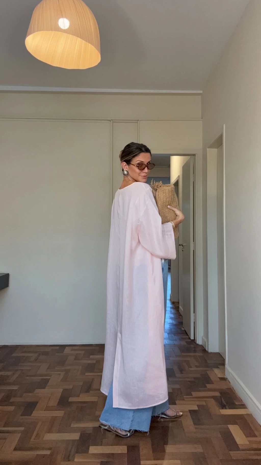 Camisa kimono em linho puro, modelagem alongada. Sem fechamento.