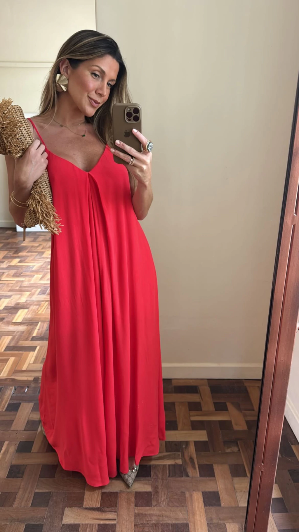 Macacão com corte bem amplo parece até um vestido, em uma viscose super levinha com toque extremamente macio. Todo forrado e com alcinhas reguláveis.