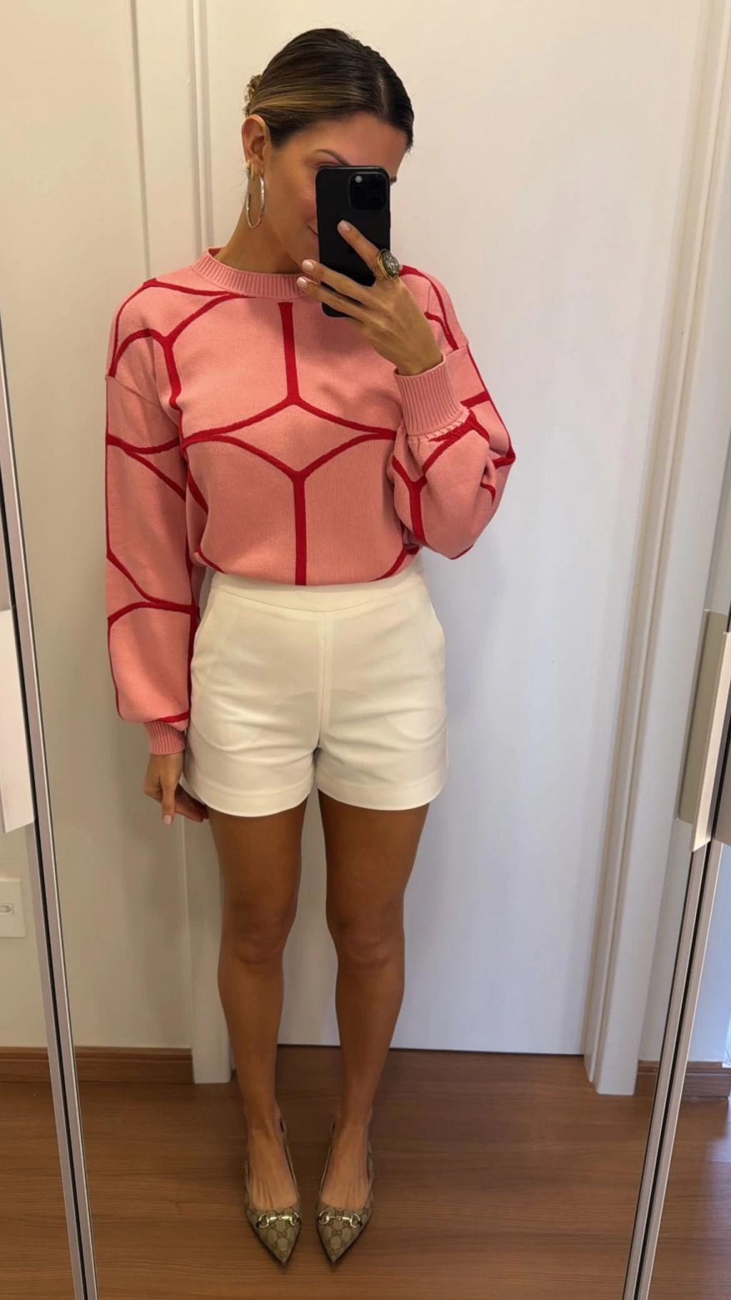 Short em tecido encorpado de alfaitaria. Fechamento por ziper dourado na lateral.