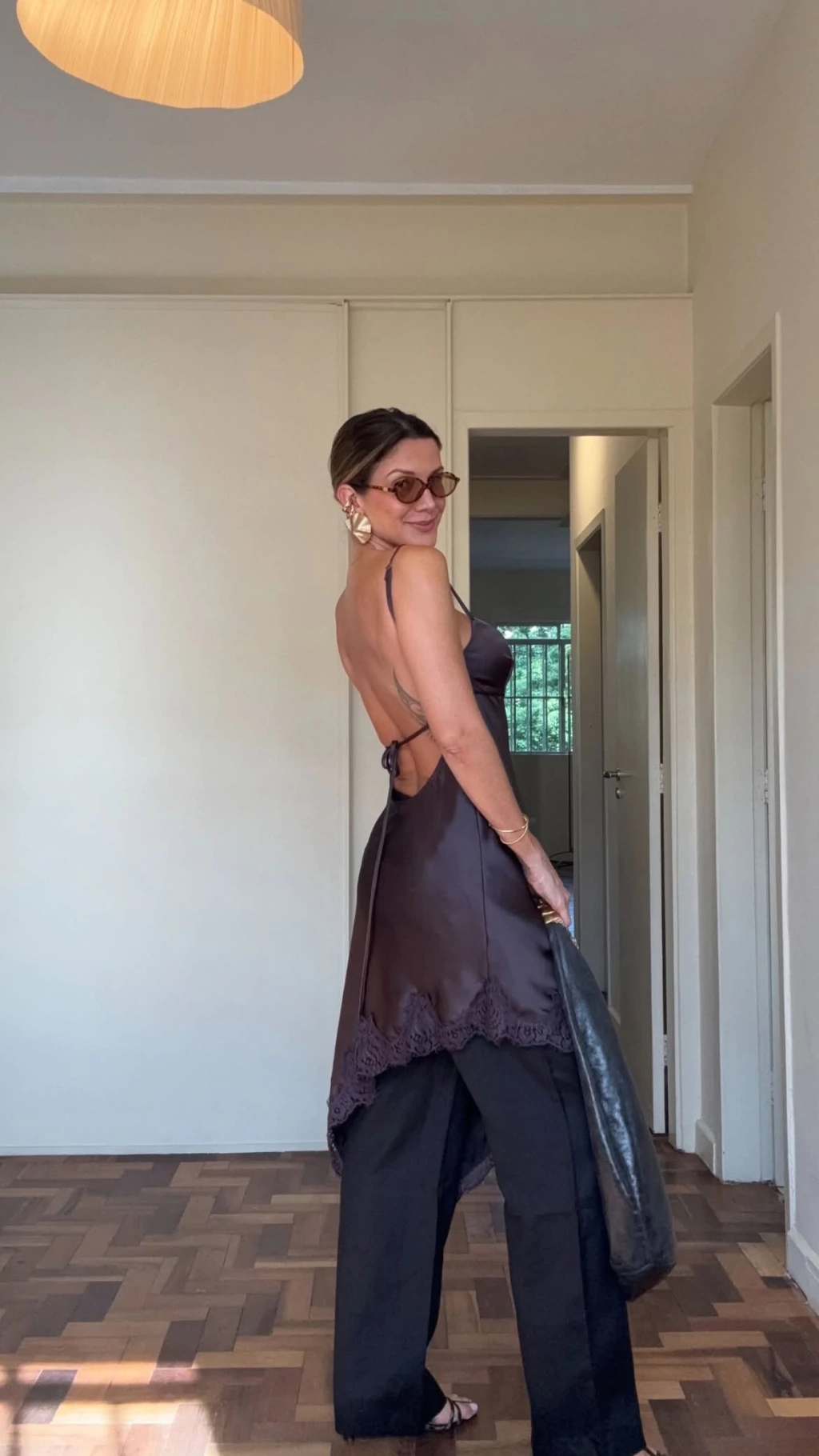 Vestido em cetim, com busto bustie duplo bem estruturado, alcinhas com regulagem nas cavas.