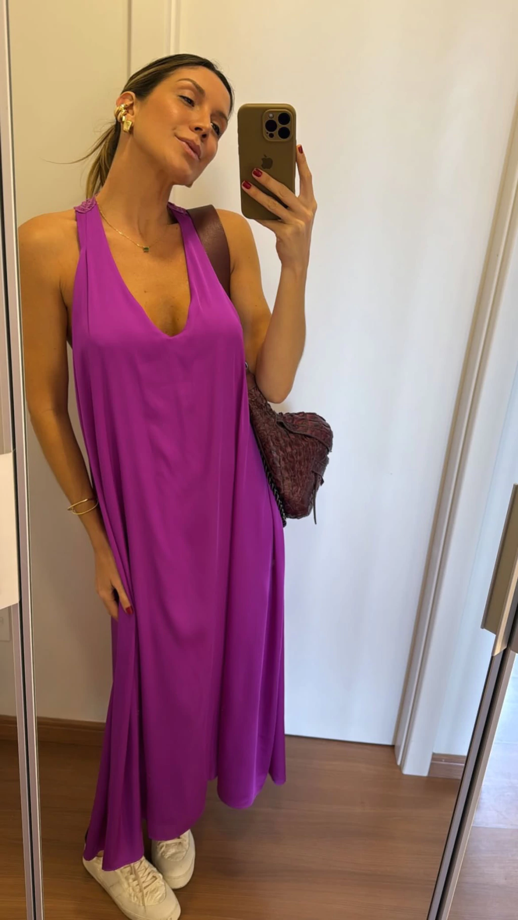 Amanda tem 1,77m, veste sutiã 44 e jeans 36 e usa o tamanho M por conta da sua altura.